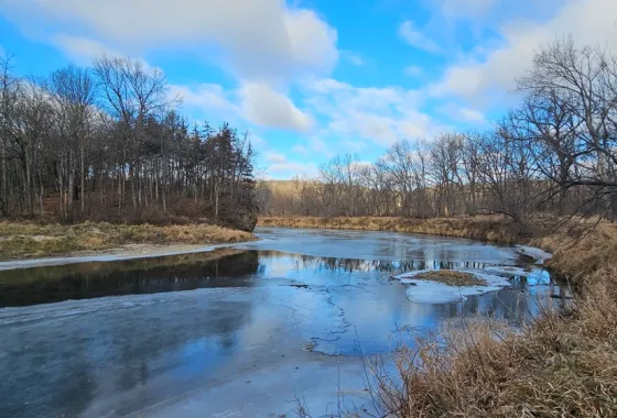 51 acres of secluded hunting land with ½ mile of Root River and duck slough near La Crescent within Houston County, MN