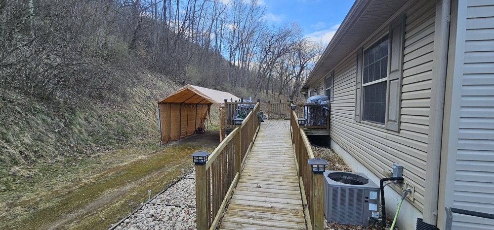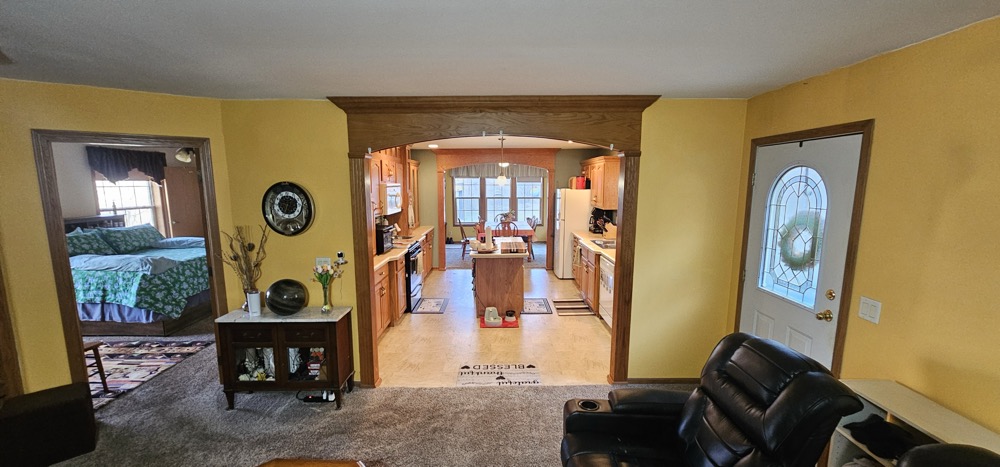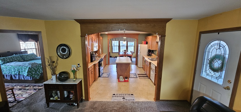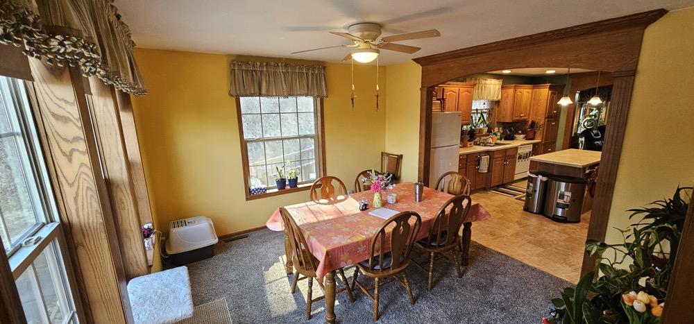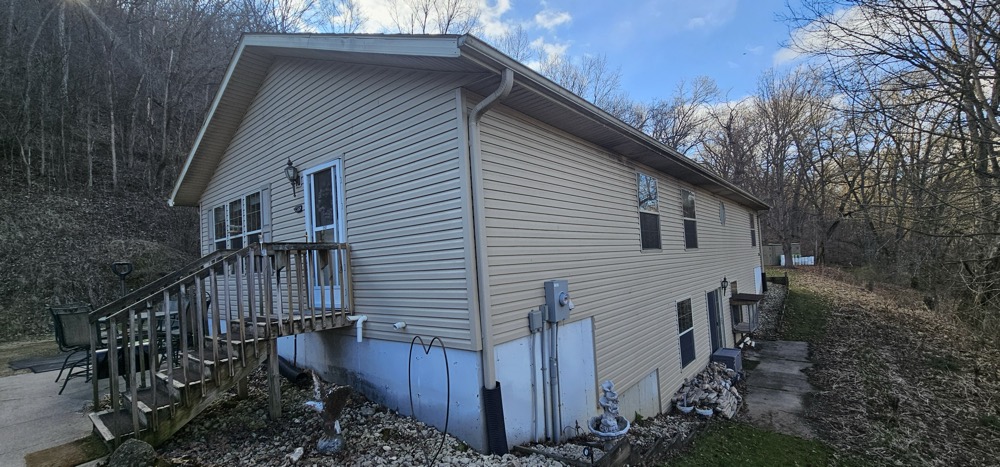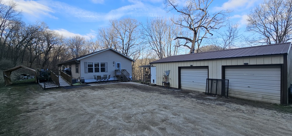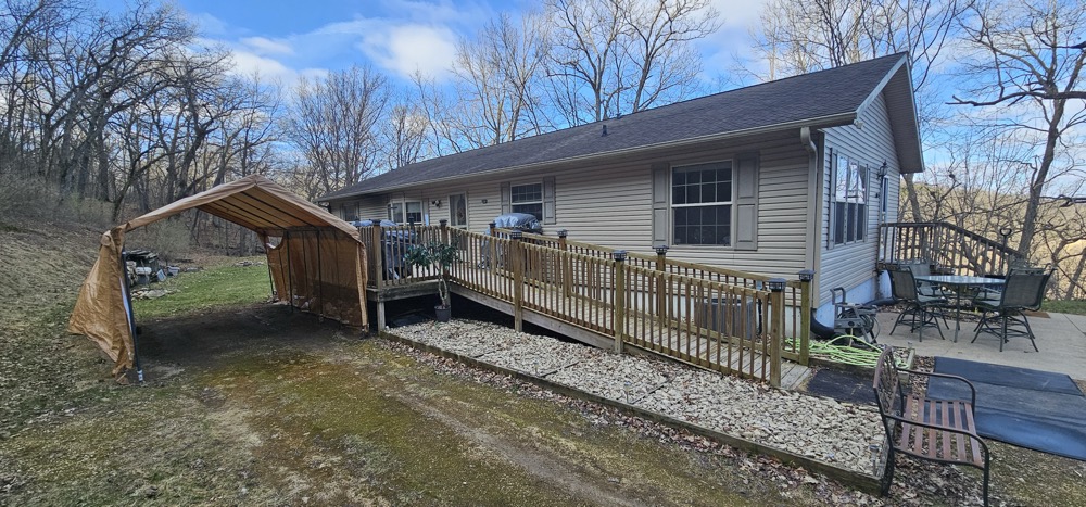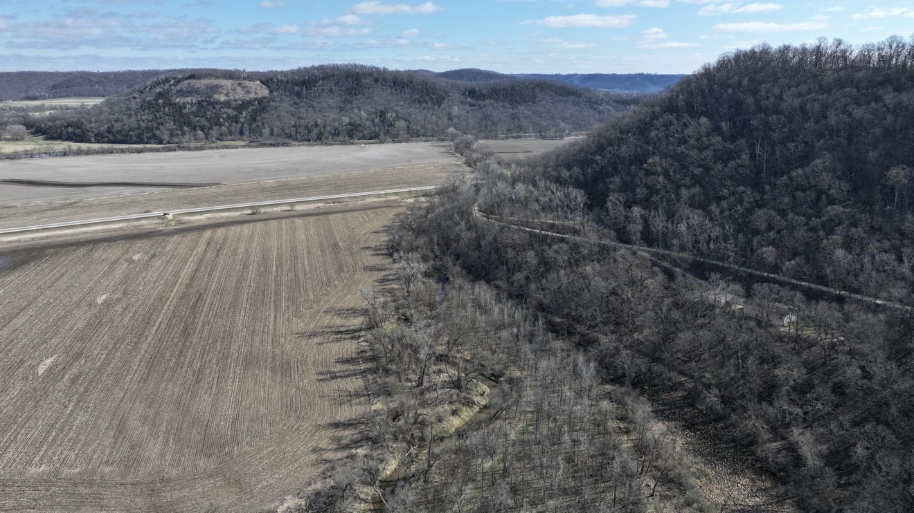 This secluded home sits nestled on 10 wooded acres in the bluff country overlooking the Root River Valley. The springs and creek can be viewed down in the valley from the home which sits perched in the bluffs. The walkout rambler style home is approximately 3500 square feet with 3 Bedrooms and 3 Baths on one level. The mud room and main floor laundry area lead to a open dining and kitchen areas. The spacious kitchen includes an island and lots of cabinet space. The main floor living room has nice built ins with fireplace. The partially finished basement could offer additional bedrooms. There is a nice detached 3 car garage, concrete patio, and spacious wood deck. The flat lawn is starting to green up and has a nice firepit to enjoy time outside. The wooded acres offer great deer and turkey hunting! Close commute to La crescent, Lacrosse or Winona.