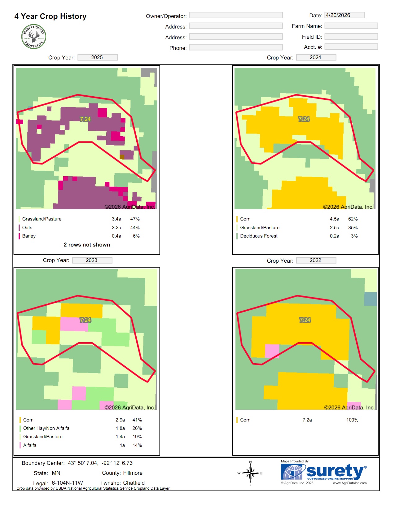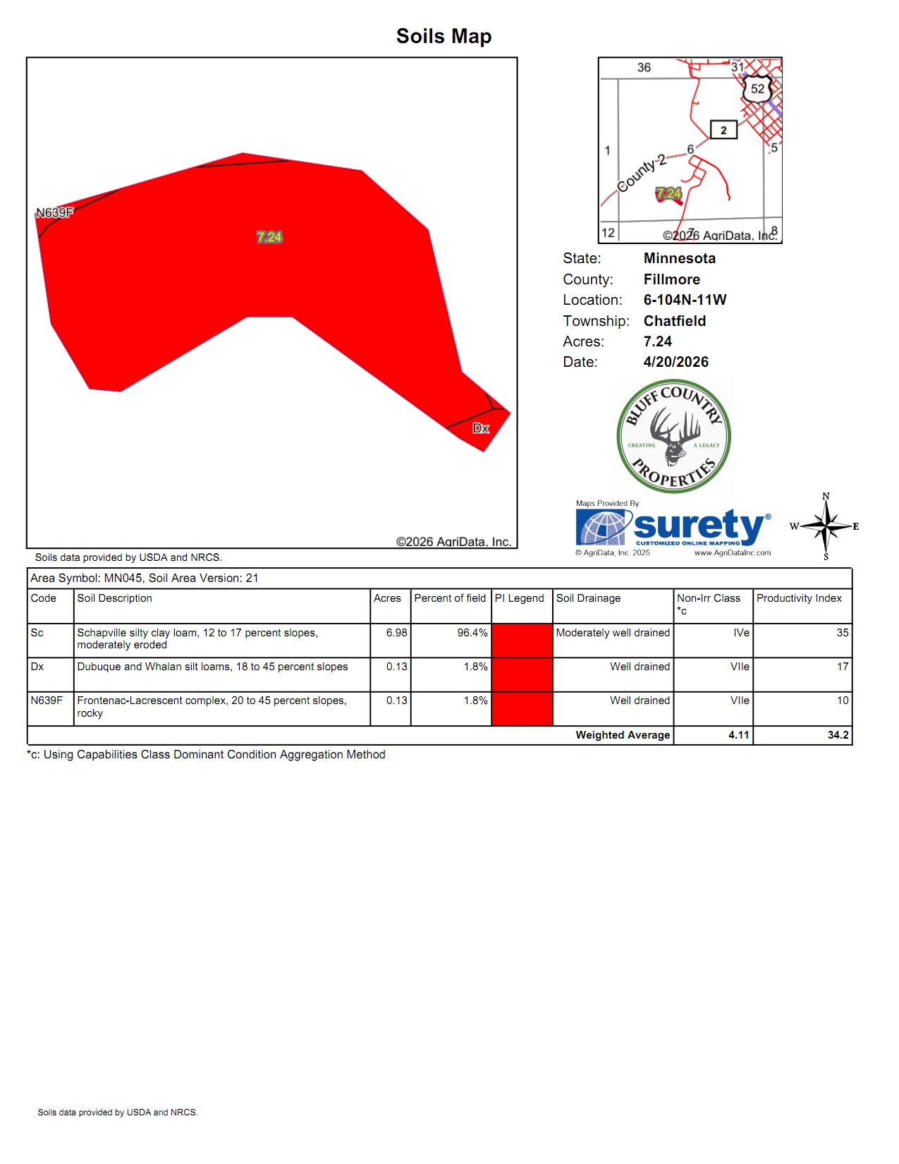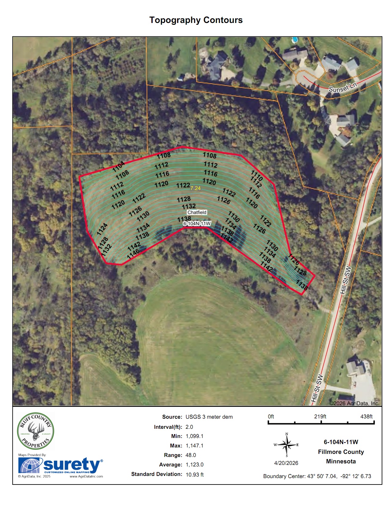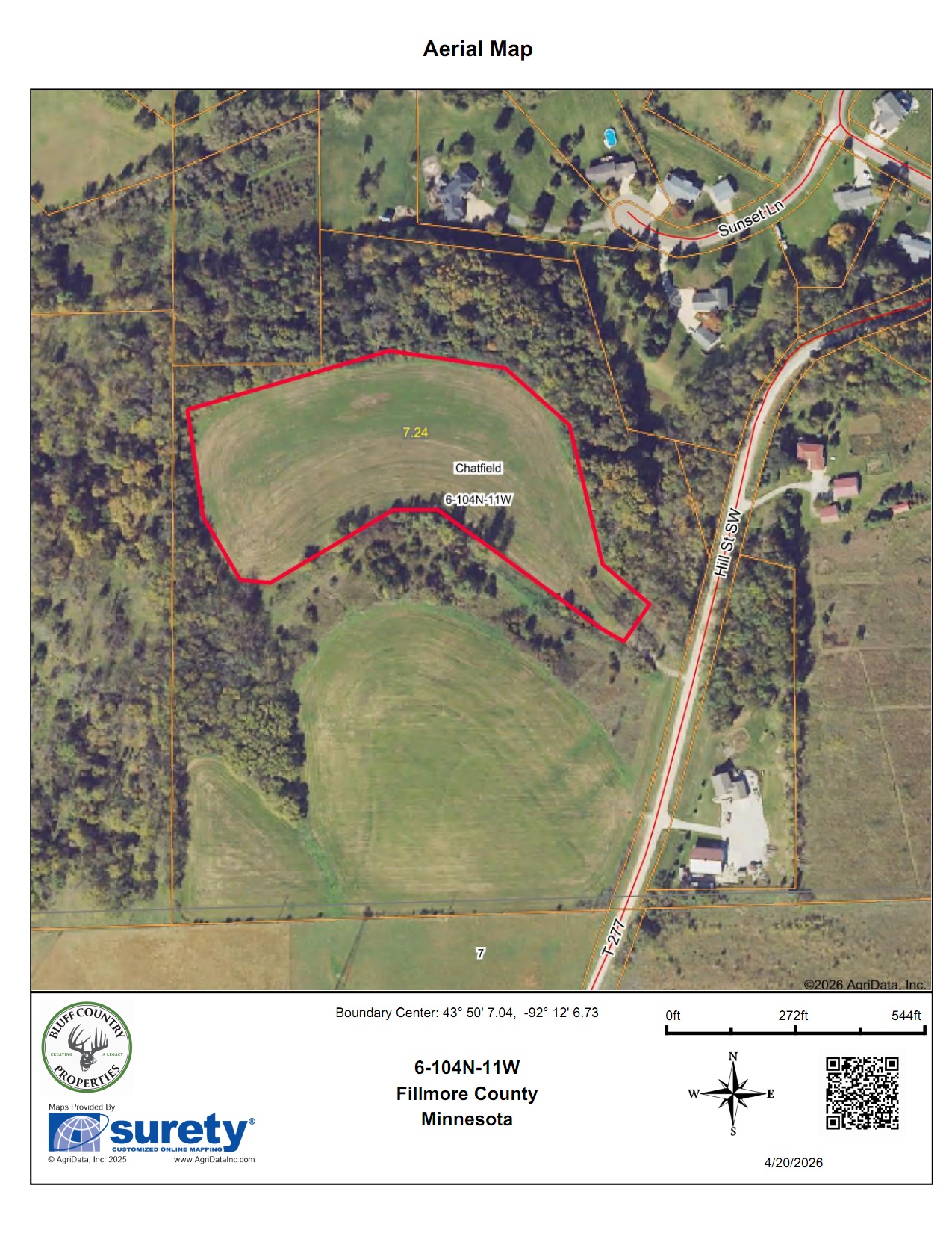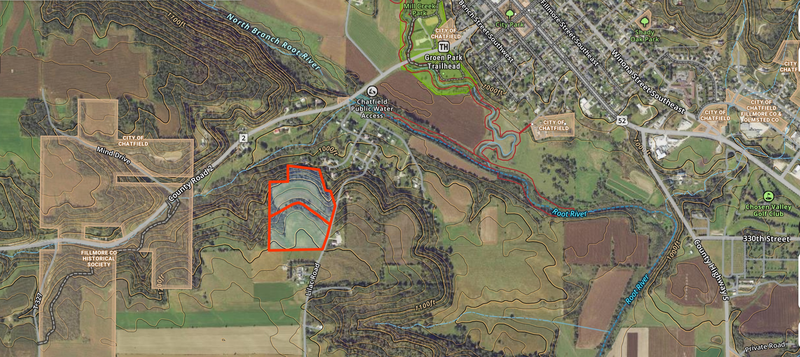 This 16.79-acre buildable bluff country hilltop land is gently rolling, on a black top road, and has panoramic views overlooking Chatfield. There are approximately 7.25 acres of rolling tillable with the balance in nice woods with some mature black walnut timber. Power and internet are at the road. The property is within the city limits of Chatfield. Stroll down the hill and get some of the best trout fishing southeast Minnesota has to offer in the North Branch of the Root River or the Mill Creek. The Mill Creek Park is nearby with facilities and miles of paved walking trails. Adjacent 15.72-acre parcel available for $240,000. Conveniently located approximately 15 miles south of Rochester.