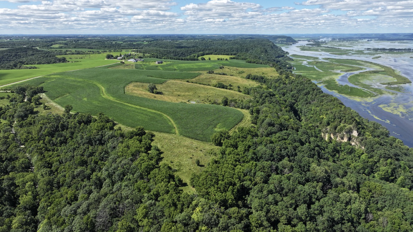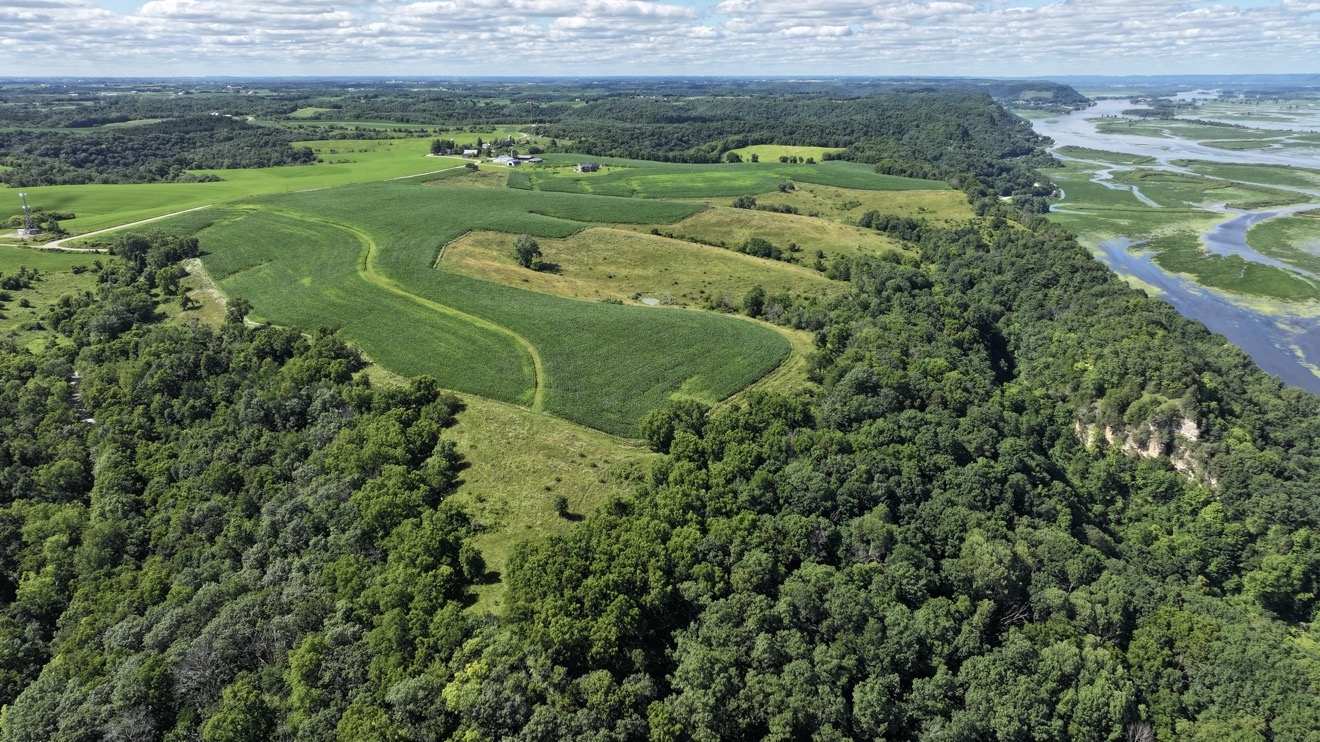 Views like this don’t come along often! These 40 acres sit perched high on top of the expansive ridge overlooking the Mississippi River for miles. You can see Wisconsin across the river clearly! The land consists of 21 acres of tillable land which is gently rolling and 19 acres of woods and pasture. There is an existing field road on top of the contour from the township road which would lead to many potential building sites. The land is adjacent to 2,165 acres of RJD Memorial State Forest which has 17 miles of trails for horse riding, hiking, and cross-country skiing in the winter. Don’t miss the opportunity of a lifetime to build your dream home with these breathtaking views! La Crescent and Lacrosse are 15 miles north along County Road 26, which is a beautiful drive.
