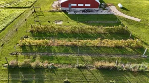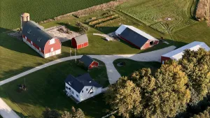 The house was lifted in 2008 and a new ICF foundation was installed. The following upgrades were included: geothermal heat/air, new windows, roof, new electric and plumbing, radon remediation and propane backup furnace. The house was added on to and completely remodeled to create a 3075 square foot 4 Br/2 Ba farmhouse with dormers and south facing front porch with maintenance free decking. The 2.5 car 28×32 garage was built new in 2011 and includes a fully insulated and heated workshop in the upper level. The 40×88 outbuilding has a 28×40 heated and insulated workshop. The large hay barn has amazing timber beams and is in great shape. Three other outbuildings have new tin and are in good condition. Two mature apple trees sit next to a vineyard & garden area. Seller installed a new septic system in 2023.