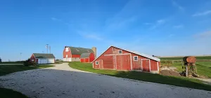 This picturesque 5-acre hobby farm is surrounded by a mature pine and maple wind break with south facing panoramic views.
