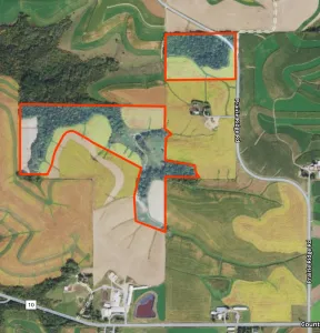 This secluded buildable hunting tract has top access from 2 locations and boasts panoramic views. There are 49 acres of hardwoods & pasture and 48 acres of tillable which are laid out great to have food plots in multiple locations to draw deer and turkeys from the surrounding area. The wooded & pasture areas have two ponds, apple trees and 12 acres fenced. 2024 crops will be in alfalfa and corn. The property lays out to allow hunting all wind directions. The woods are full of great deer and turkey sign. Beaver Creek State park is 5 minutes away which offers miles of hiking trails. Miles of Beaver Creek trout fishing is just down the hill near the Schechs Mill. Thousands of acres of public hunting nearby. Additional 25 acres of buildable land available on the same farm. 5 minutes to Caledonia, 18 miles to Lacrosse, and 50 miles to Rochester.