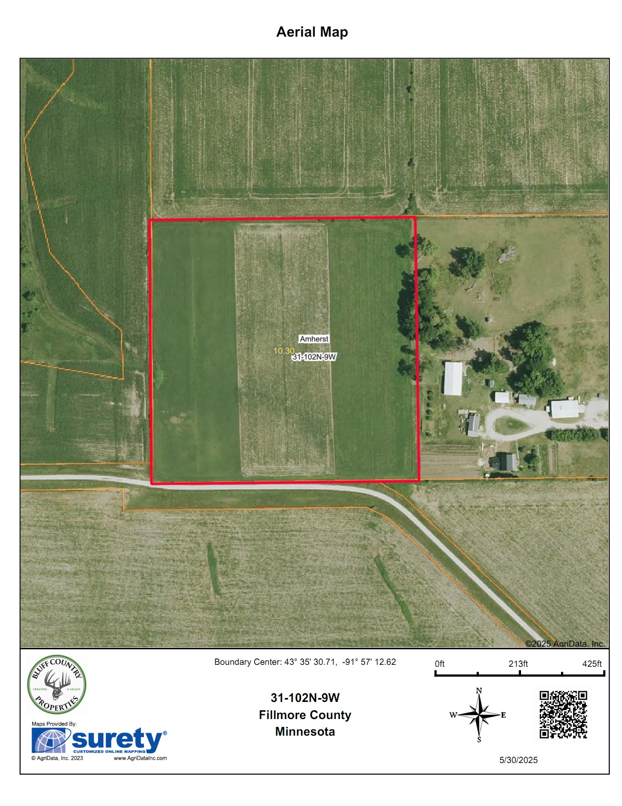 Directions: From Harmony: 1.5 miles east on Hwy 52. 2 miles north on County 115. ¾ mile North on 351st Ave